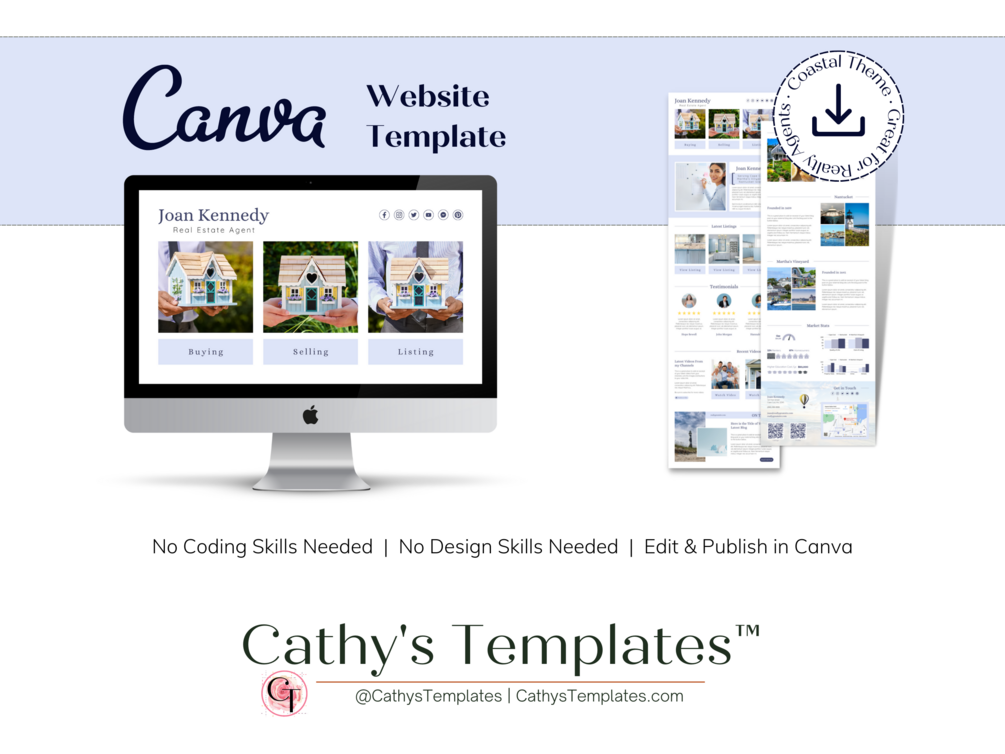 Real Estate Canva Website Landing Page Template Coastal Theme | One Page Website Template | Real Estate Landing Page | Simple Website Templates